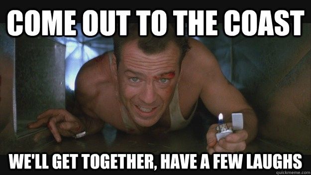 ‘92 I lived in a little blue-panelled house in a small town waaaaay up in Northern Canada. One evening, three mildly stoned roomies sat around a television watching an NHL game while the snow of a dark and pitiless winter gathered at our door. TV time-out or something and a beer commercial came on screen. The voice-over extolled the virtues of the breweries’ glacier-fed glory as six or eight beer cans bobbled and bounced downstream towards us. Just before they hit the camera, one after another they dropped down a waterfall. Being broke, mildly stoned and 20 years old with an innate need/ability to make everyone laugh, I took this moment to dive from the couch with outstretched arms and cupped hands to catch each gloriously wet and sun-dappled can as though they were going to fall to our filthy living room floor. It was a visual gag and my roomies all chortled through the haze. One of them, a guy I’d only known a month or so, cackled, shook his head and through wide grin muttered,